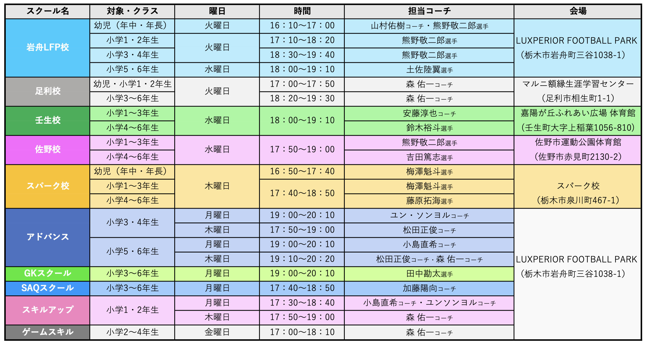 ※岩舟LFP校と佐野校は屋内の会場へ変更する場合がございます。
