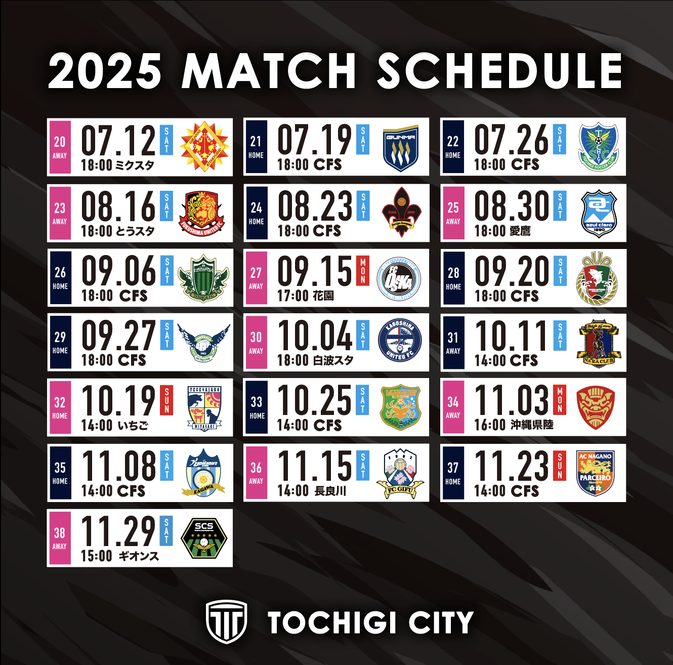 最新情報 チーム情報 2025.7.17 2025シーズン後半戦日程発表のお知らせ 2025明治安田J3リーグにおける26節以降のキックオフ時刻が決定いたしましたので、お知らせいたします。 2025明治安田J3リーグ後半戦 日程画像 ▼正方形バージョン ▼縦型バージョン Tweet to @tochigi_city_ « 前のページ 次のページ »
