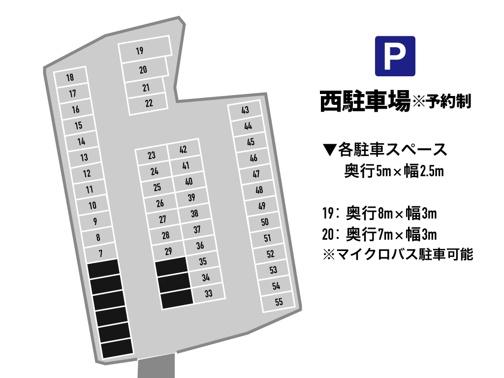 →19番・20番はマイクロバスの駐車が可能です。(普通車での利用も可)