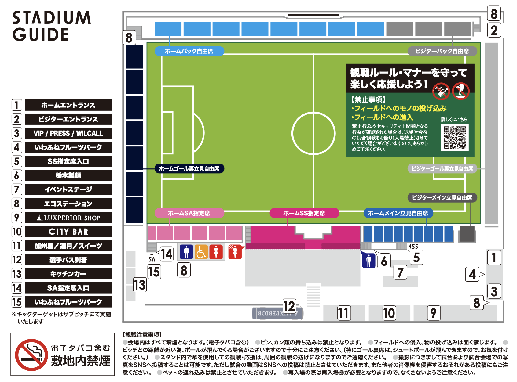 ・ビジタークラブの選手バスが到着・出発する際の入り待ち・出待ちは、スペースや安全面を考慮し禁止とさせていただきます。何卒ご理解をお願いいたします。