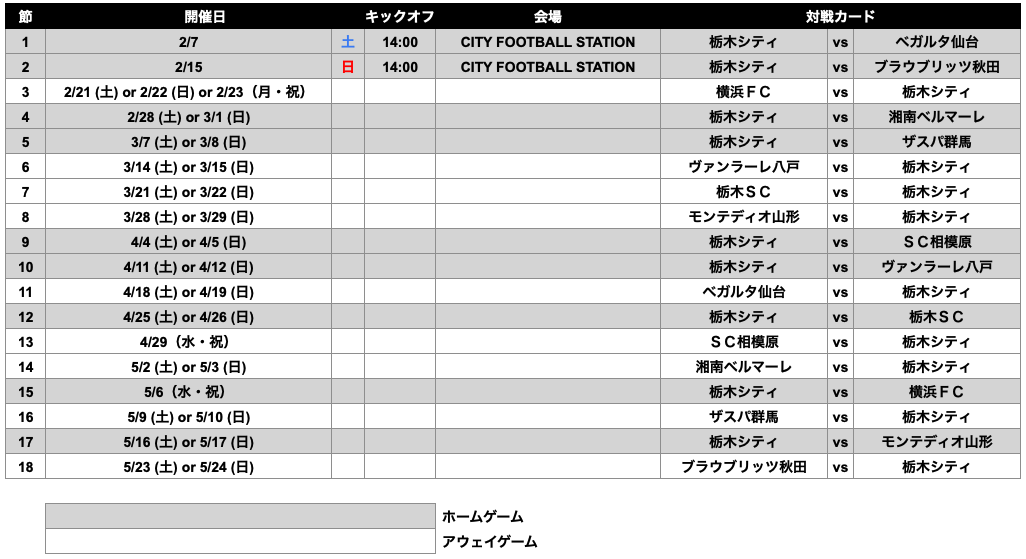 対戦:栃木シティ vs ブラウブリッツ秋田