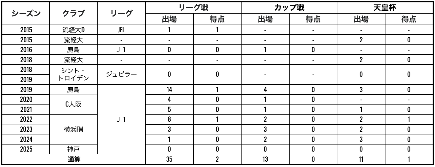 FCアネーロ宇都宮U-15-アルビレックス新潟ユース-流通経済大-シント=トロイデン/ベルギー-鹿島アントラーズ-シント=トロイデン/ベルギー-セレッソ大阪-横浜F・マリノス-ヴィッセル神戸