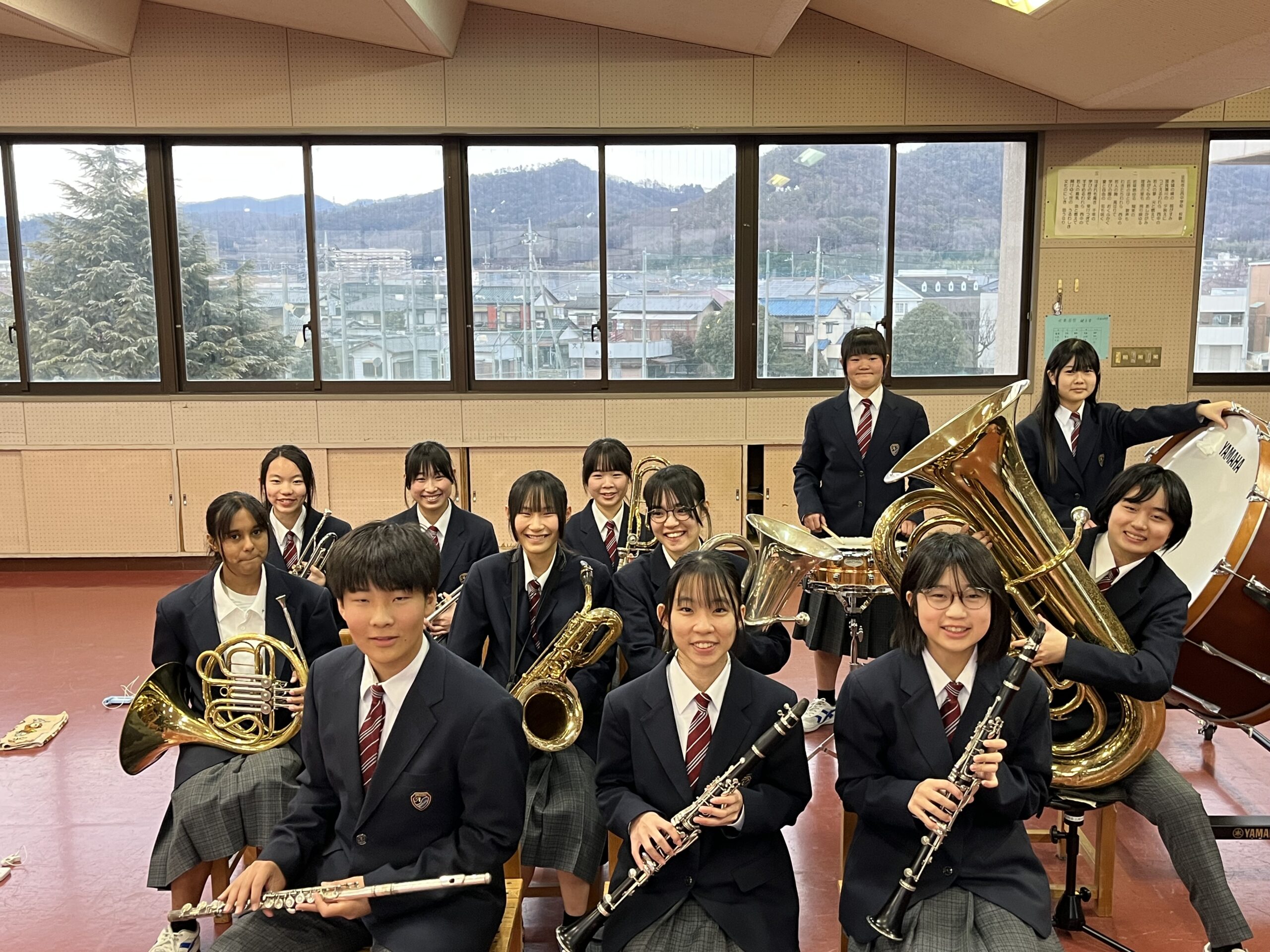 人数は決して 多くありませんが、部員一人一人の個性が豊かで、学年やパートを越えて助け合いながら、明るく前向きに練習に取り組んでいます。
