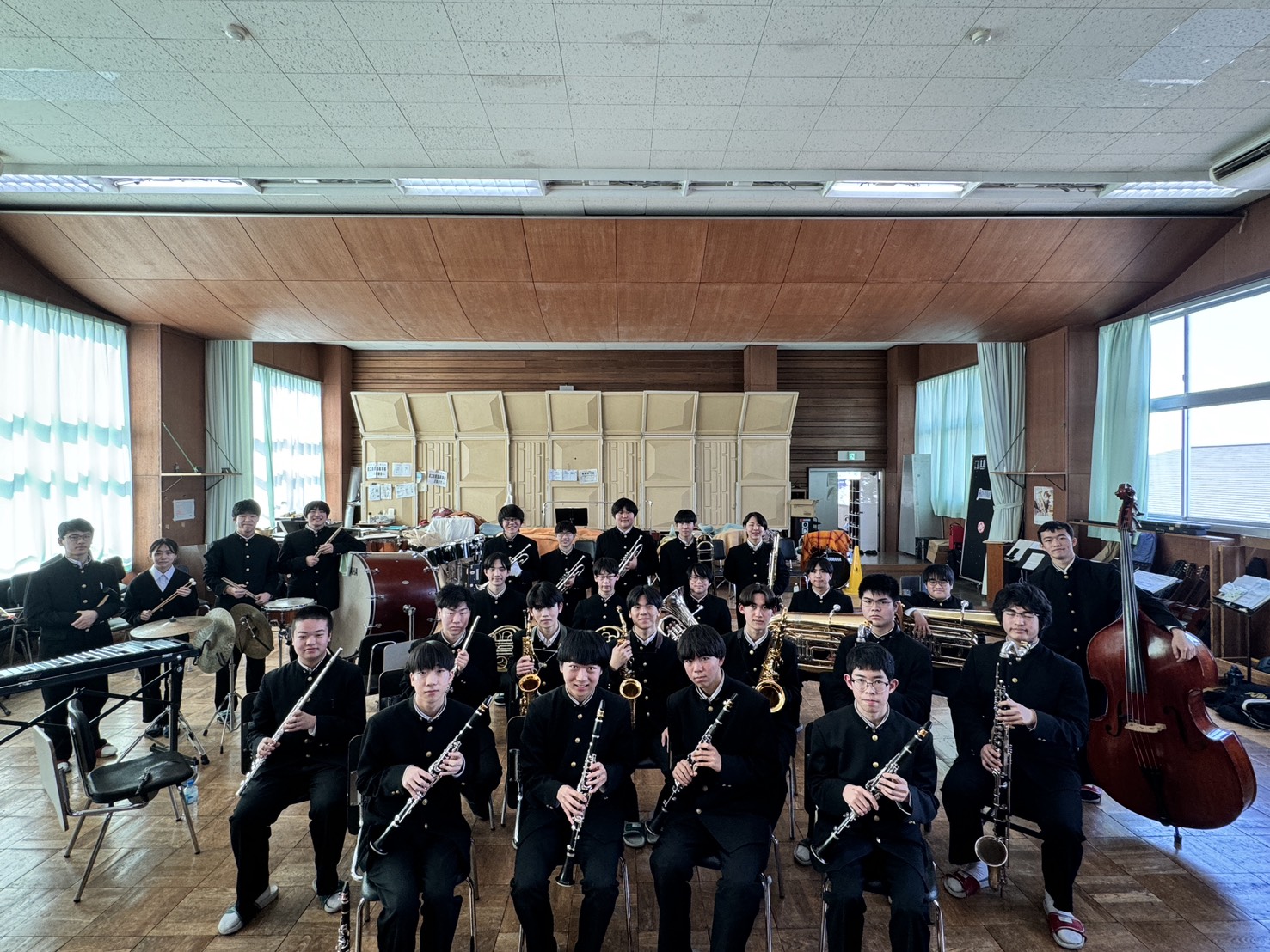 私たち真岡高校吹奏楽部は、2年生9名、1年生17名の計26名の部員で活動しています。昨年の10月には、東日本学校吹奏楽大会に出場し、ゴールド金賞を受賞することができました。現在は、今年度の6月14日に開催する予定の第61回定期演奏会や夏のコンクールに向けて練習に励んでいます。男子校ならではの熱気が部の魅力です。