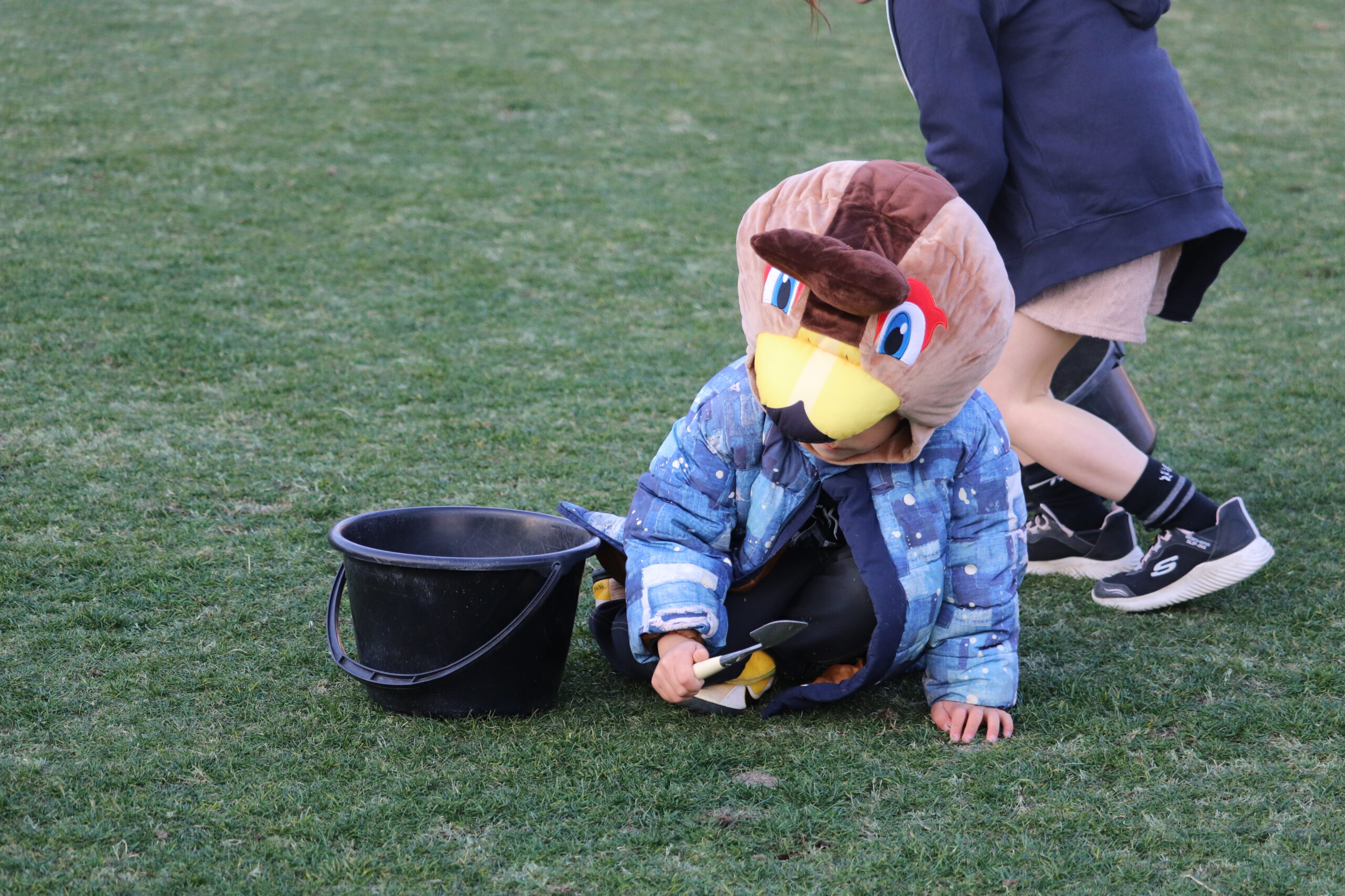 ②バケツとスコップを持って、ピッチ内に砂をまく。
