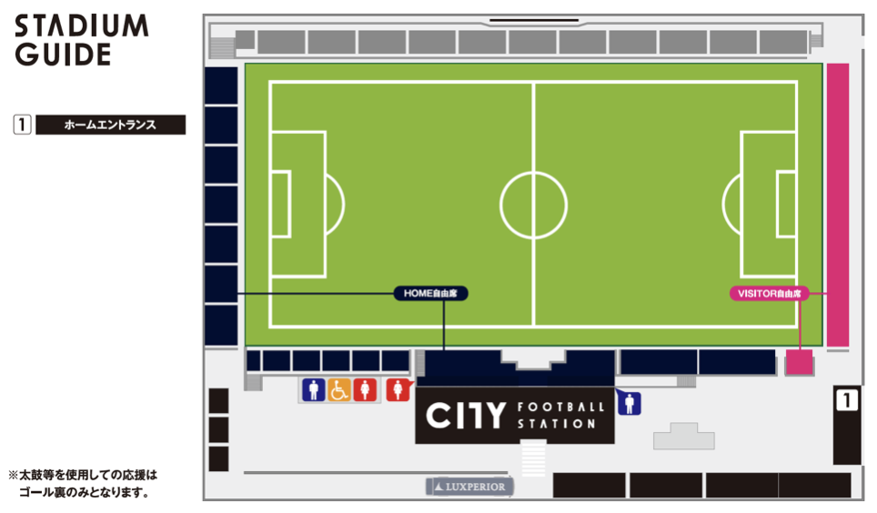 ※太鼓等を使用しての応援は、ゴール裏のみとなります。