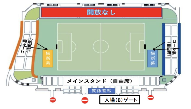※太鼓・鳴り物・声だし等の応援は、ゴール裏エリアのみとします。