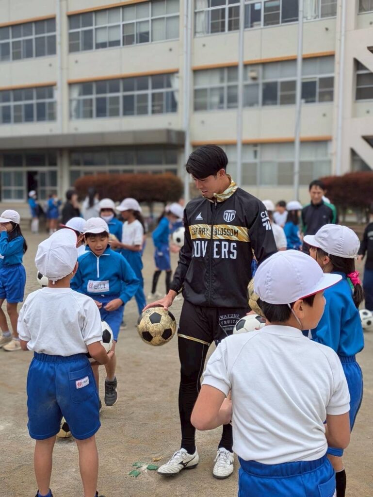 10月31日(金)にホームタウンの栃木市にある「栃木市立岩舟小学校」へ、トップチームから小西慶太郎選手、栃木シティスクールマスター森佑一、バックスタッフの若林学がコーチとして訪問し、小学4年生の児童の皆さんと保護者の方にもご参加いただき交流をしました。
