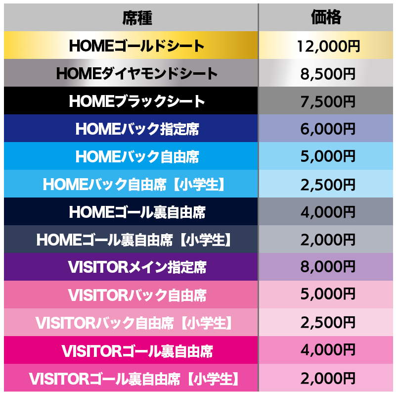 ※HOMEブラックシート(2025年:HOMEメイン立見自由席から名称変更)とHOMEゴール裏自由席はこれまで立見席でしたが、座席が付きます。